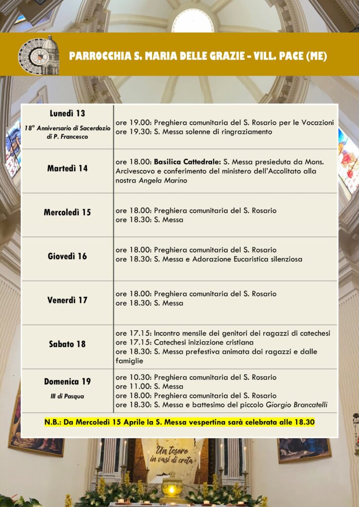 PROGRAMMA SETTIMANALE 13-19 APRILE
