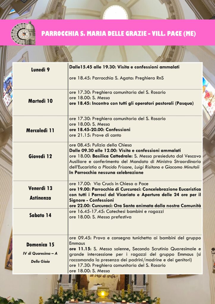 PROGRAMMA SETTIMANALE 9 – 15 MARZO